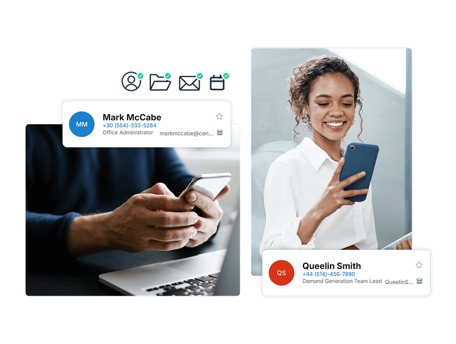 When Chris joins the company, key contacts like Kristen are automatically added to his phone, ensuring instant connectivity and reducing communication friction.