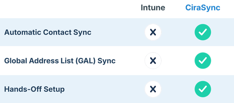 - MDM ≠ Sync: Intune locks down devices — it doesn’t sync contacts/calendars to them.